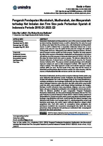 | Keywords: | Pendapatan Murabahah; Mudharabah; Musyarakah; Net Imbalan; Firm Size; Perbankan Syariah |