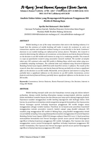 | Keywords: | Convenience; Service Features; Sharia Financial Literacy; Use Decision; Interest in Using; BSI Mobile |