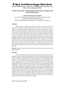 Ratnasari, Aprilia Dwi and Safitri, Rini (2024) Analisis faktor-faktor yang mempengaruhi keputusan penggunaan BSI Mobile di Malang Raya. Al-Kharaj: Jurnal Ekonomi, Keuangan & Bisnis Syariah, 6 (9). ISSN 2656-2871