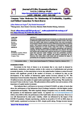 TInvestors increasingly demand stock investments, as evidenced by the number of Indonesian capital market investors reaching 10 million in 2022. This surge shows the public's high interest in gaining profits from stock investments, necessitating in-depth research on factors influencing stock returns for optimal profits. This research examines the influence of profitability, liquidity, and political connections on stock returns, using firm value as a moderating variable. Employing a quantitative, descriptive methodology and purposive sampling, 29 firms listed in LQ45 from 2020-2022 were selected. The study uses primary and secondary data, analyzed with Eviews 12 software through a panel data regression model. Findings reveal that profitability positively affects stock returns, while liquidity and political connections do not. However, firm value affects stock returns and can moderate the impact of profitability but not liquidity or political connections.