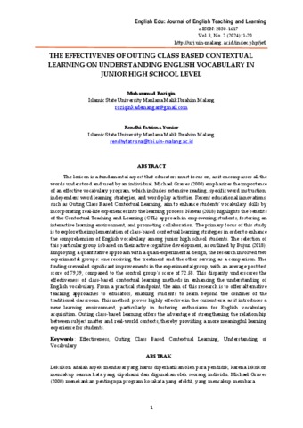 The effectivenes of outing class based contextual learning on understanding English vocabulary in junior high school level.