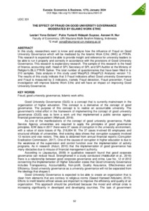| Keywords: | Fraud; good university governance; Islamic work ethic |