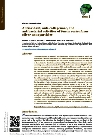 Antioxidant, anti-collagenase, and antibacterial activities of Fucus vesiculosus silver nanoparticles.