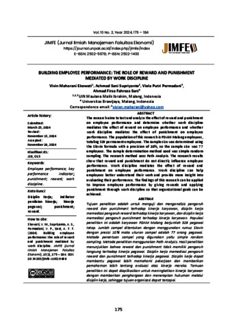 The research aims to test and analyze the effect of reward and punishment on employee performance and determine whether work discipline mediates the effect of reward on employee performance and whether work discipline mediates the effect of punishment on employee performance. The population of this research is PDAM Malang employees, totaling 329 permanent employees. The sample size was determined using the Slovin formula with a precision of 10%, so the sample size was 77 employees. The sample determination method used was simple random sampling. The research method uses Path Analysis. The research results show that reward and punishment do not directly influence employee performance. Work discipline mediates the effect of reward and punishment on employee performance. Work discipline can help employees better understand their work and provide more insight into evaluating their performance. The findings of this research can be applied to improve employee performance by giving rewards and applying punishment through work discipline so that organizational goals can be achieved.