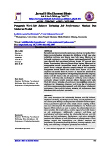 Kesejahteraan karyawan dan kesejahteraan psikologi merupakan faktor dalam menyeimbangkan pekerjaan dan kehidupan pribadi yang akan melahirkan performa atau kinerja yang baik jugaa. Eksplorasi ini berbentuk explanatory research dengan pendekatan kuantitatif. Data yang diperoleh dari penyebaran kuisioner kepada 107 pegawai tetap Kantor Pemerintahan Sekretriat Daerah Kota Malang. Eksplorasi ini menggunakan metode pengambilan sampel acak sederhana dengan rumus Slovin, sehingga diperoleh sampel sebanyak 107 responden. Penggunaan metode analisis data Partial Least Square (PLS) pada eksplorasi ini melalui Smart-PLS versi 4.0. Tujuan dari penelitian ini untuk menguji dan menganalisis hubungan langsung dan tidak langsung antara work-life balance dan job performance yang dimediasi oleh employee well-being dan psychological well-being serta work-place spirituality sebagai variabel moderasi Adanya dampak positif pada Work-life balance terhadap job performance menunjukkan output dari eksplorasi ini. Selanjutnya Employee well-being dan Psychological well-being mampu memediasi pengaruh work-life balance terhadap job performance. Dan work-life balance terhadap job performance dapat dimoderasi oleh work-place spirituality.