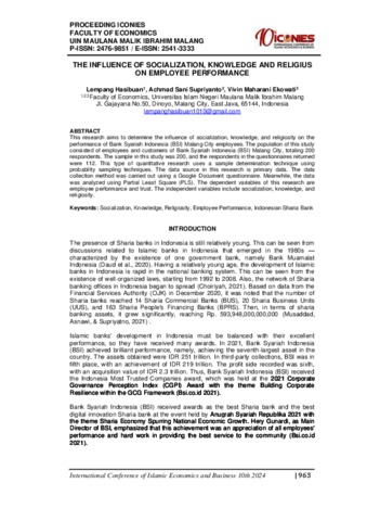 | Keywords: | Socialization; Knowledge; Religiosity; Employee Performance; Indonesian Sharia Bank |