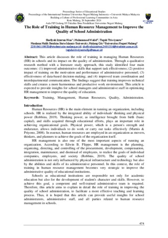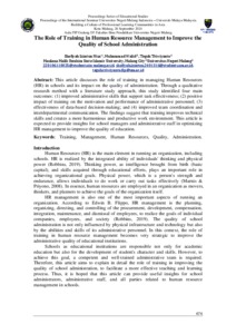 This article discusses the role of training in managing Human Resources (HR) in schools and its impact on the quality of administration. Through a qualitative research method with a literature study approach, this study identified four main outcomes: (1) improved administrative skills that support task effectiveness; (2) positive impact of training on the motivation and performance of administrative personnel; (3) effectiveness of data-based decision-making; and (4) improved team coordination and interdepartmental communication. The findings suggest that training improves technical skills and creates a more harmonious and productive work environment. This article is expected to provide insights for school managers and administrative staff in optimizing HR management to improve the quality of education.