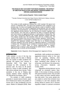The number of traffic accidents in Malang City in 2021 reached 159 reports from January to December 2021. This figure has increased by 30% compared to the previous year. As many as 36 people have died as a result of accidents. Traffic accidents often occur as a result of aggressive driving behavior such as reckless overtaking, anti-social behavior, and recklessness. Several studies have shown that aggressive driving behavior can be influenced by emotion regulation and moral restraint. This study aims to determine the effect of emotional regulation and moral restraint on aggressive behavior in motorcyclists in Malang City. This study uses a quantitative approach with multiple regression analysis methods. The subjects studied were 180 motorbike riders who live in Malang City. The results of the analysis show that the level of emotion regulation, moral mastery, and aggressiveness in motorcyclists in Malang City is at a moderate level. The results of the regression analysis show that there is an influence between emotional regulation and moral restraint on aggressive behavior in motorcyclists in Malang City. Simultaneously the variables of emotional regulation and moral pressure have a 28.8% effect on driving aggressiveness. In addition, aggressiveness in driving is also influenced by several factors, namely gender, age group, type of vehicle, and driving legality.