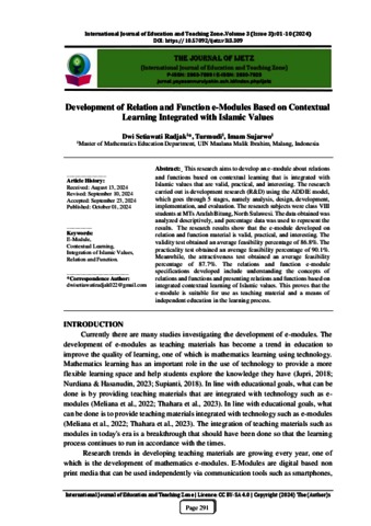 | Keywords: | e-Module; Contextual Learning; Integration of Islamic Values; Relation and Function |