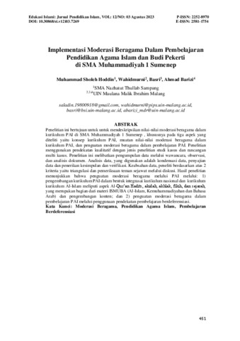 Implementasi moderasi beragama dalam pembelajaran Pendidikan Agama Islam dan Budi Pekerti di SMA Muhammadiyah 1 Sumenep.
