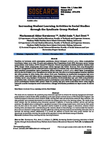 Increasing Student Learning Activities in Social Studies through the Syndicate Group Method.