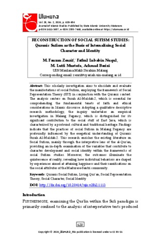 The reconstruction of social sufism studies: Quranic sufism as the basis of internalizing social character and identity.