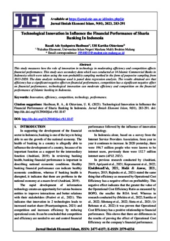 Technological Innovation in Influence the Financial Performance of Sharia