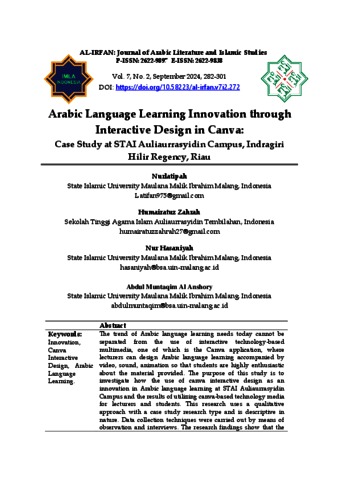 Arabic language learning innovation through interactive design in canva: Case study at STAI Auliaurrasyidin Campus, Indragiri Hilir Regency, Riau.