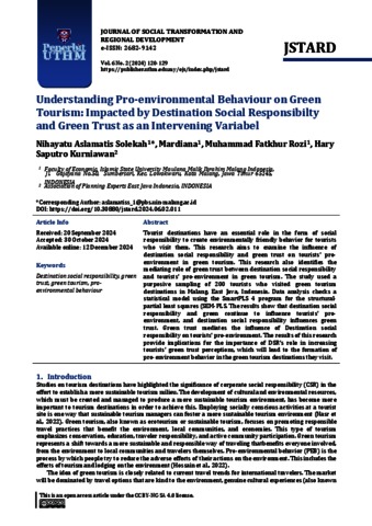Understanding pro-environmental behaviour on green tourism: Impacted by destination social responsibilty and green trust as an intervening variabel.