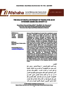 The role of digital dictionary of translator AR-ID in modern Arabic era society 5.0.