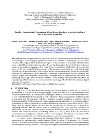 Teacher innovation in elementary school education: Improving the quality of learning in the digital era.