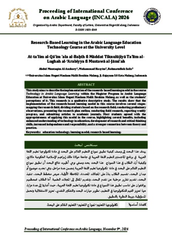 At-ta'lim al-Qā'im 'ala al-Baḥth fi Māddat Tiknulūjiyā Ta'līm alLughah al-‘Arabiyya fi Mustawā al-Jāmi'ah.