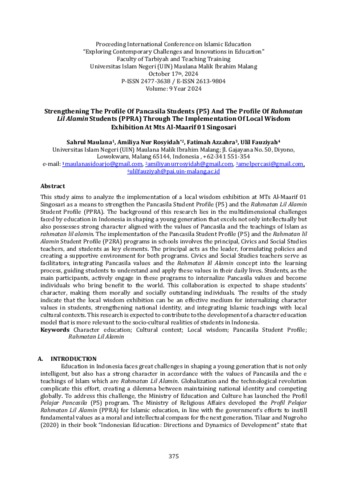| Keywords: | Character education; Cultural context; Local wisdom; Pancasila Student Profile; Rahmatan Lil lamin |