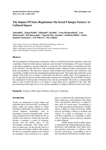 The development of urbanization in Surakarta, which is not followed by land expansion, makes the availability of land for tombs reduced, minimal, and even unfit for burial places. The type of research is descriptive qualitative, and data collection is carried out: first, observation of community activities at the cemetery. Second, interviews with community leaders, religious leaders, policymakers; and third, documentation. The interactive analysis model includes data reduction, data submission, and concluding. Validity test by data triangulation and informant study. The results showed that the social change of the tomb was no longer a sacred place but became a public place. The management of graves regulated by the government and business institutions is changing. The term Public Cemetery has implications for the people of Surakarta City and its government. The tomb is a shared public space so that socially the grave is no longer a sacred space but is regulated by the state. The government provides equal access to its citizens regardless of religious differences and social status.