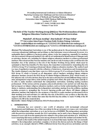 The Role of The Teacher Working Group (KKG) on The Professionalism of Islamic Religious Education Teachers in The Independent Curriculum.pdf Download (217kB) | Preview |