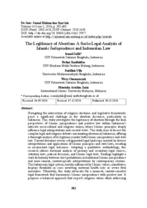 Jalili, Ismail, Syaifuddin, Helmi, Ulfa, Fadillah, Gusmansyah, Wery and Zaim, Muntaha Artalim (2024) The legitimacy of abortion: A socio-legal analysis of Islamic jurisprudence and Indonesian law. De Jure: Jurnal Hukum dan Syar'iah, 16 (2). ISSN 20851618 (p.); 25281658 (e.)