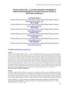 Studi literatur: Analisis fenomena pemberian psikoterapi dzikir dalam mengurangi tingkat kecemasan remaja.