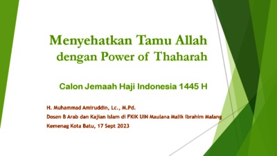 Presented at Penyuluhan Calon Jamaah Haji 1445 H Kota Batu Jawa Timur, 17 September 2023, Kementerian Agama Kota Batu.
