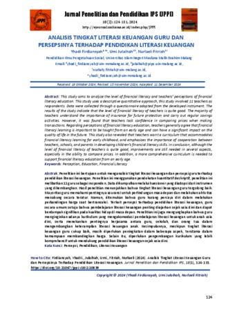 Analisis tingkat literasi keuangan guru dan persepsinya terhadap pendidikan literasi keuangan.