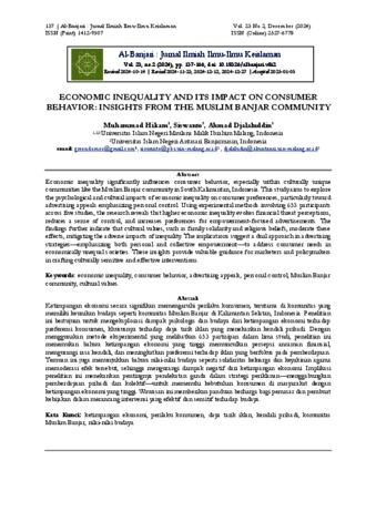 | Keywords: | economic inequality; consumer behavior; advertising appeals; personal control; Muslim Banjar community; cultural values |