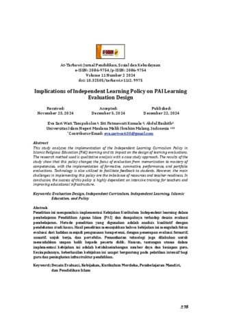 | Keywords: | Evaluation Design; Independent Curriculum; Independent Learning; Islamic Education; and Policy |