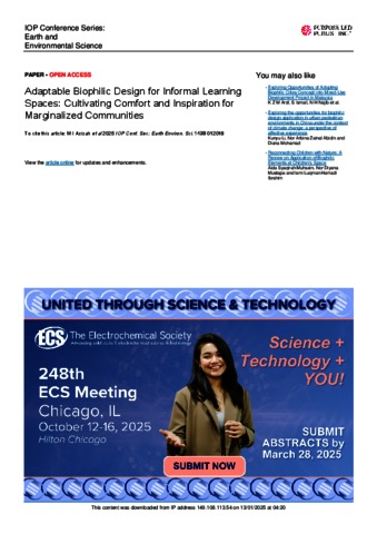 | Keywords: | Biophilic Design; Informal Learning Spaces; Adaptability; Marginalized Communities |