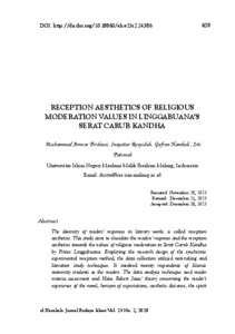 | Keywords: | Keywords: reader response; reception aesthetics; religious moderation values |