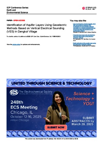 | Keywords: | Aquifer Layer; Geoelectric; Vertical Electrical Sounding (Ves) |