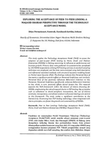 Exploring the acceptance of peer-to-peer lending: A maqasid shariah perspective through the technology acceptance model.