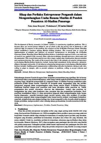 Sikap dan perilaku entrepreneur pengasuh dalam mengembangkan usaha busana muslim di Pondok Pesantren Al-Madina Ponorogo.