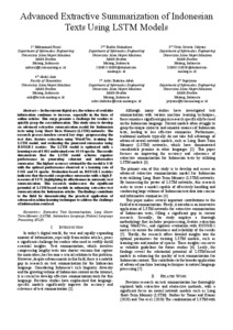 Advanced extractive summarization of Indonesian texts using LSTM models.
