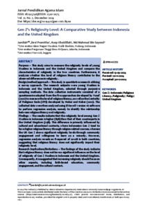 Gen z's religiosity level: A comparative study between Indonesia and the United Kingdom.