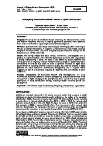 Purpose: This study aims to identify the factors influencing the interest of micro, small, and medium enterprises (MSMEs) in adopting digital zakat payments, with a particular focus on the role of zakat in supporting local economic development.