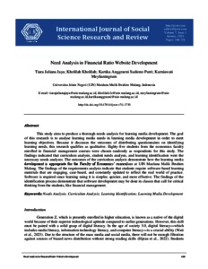 This study aims to produce a thorough needs analysis for learning media development. The goal of this research is to analyse learning media needs in learning media development in order to meet learning objectives. Because it discusses the outcomes of distributing questionnaires on identifying learning needs, this research qualifies as qualitative. Eighty-five students from the economics faculty enrolled in financial management courses were chosen randomly as respondents for this study. The findings indicated that curriculum analysis, student needs analysis, and learning identification were the necessary needs analyses. The outcomes of the curriculum analysis demonstrate how the learning media development is appropriate for the Faculty of Economics’ curriculum at UIN Maulana Malik Ibrahim Malang. The findings of the requirements analysis indicate that students require software-based learning materials that are engaging, case-based, and constantly updated to reflect the real world of practice. Software is required since learning using it is simpler, quicker, and more effective. The findings of the identification process demonstrate that software development may be done in classes that call for critical thinking from the students, like financial management.