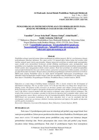 | Keywords: | smart society 5.0; pengembangan penilaian; instrumen tes kognitif; penilaian HOTS |