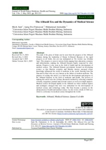 The peak of the glory of Islam can be seen from the progress of the Abbasid Dynasty during the leadership of Harun Ar-Rasyid. Because of the rapid progress in all fields, this era was nicknamed as The Golden Age (Golden Age). This progress is seen in various fields ranging from education, economy and infrastructure, making the Abbasid Dynasty highly respected by other nations. Progress is also seen in the field of health and the development of medical science. The Abbasid Dynasty government focused on developing science so that Muslim scientists and Muslim doctors emerged whose knowledge influenced the world of medicine in the world. Starting from Ibn Sina and Ar-Razi who are very famous as the fathers of modern medicine. The purpose of writing this article is to find out the development and progress of the Abbasid Dynasty in the field of medicine and health. The process of making this article uses the (Library Research) method by collecting a number of books, magazines, journals and relevant sources as well as in-depth analysis. Medical science developed rapidly in the Abbasid era where medical figures and techniques emerged that were very influential for the development of medical science and technology today. Ibn Sina became a pioneer in the advancement of health and medical science, he also wrote a book At-Tibb Law which is a reference for medical science throughout the world.