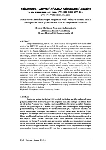Manajemen kurikulum projek penguatan profil pelajar pancasila untuk mewujudkan imtaq pada siswa di SDN Warungdowo I Pasuruan.