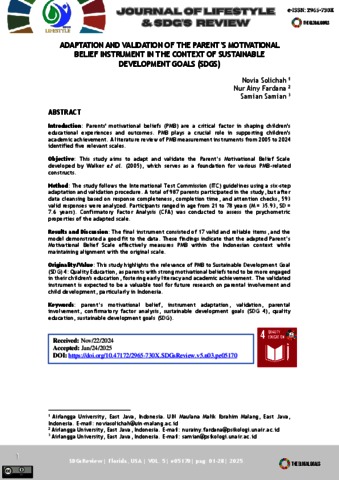 Adaptation and validation of the parent’s motivational belief instrument in the context of Sustainable Development Goals (SDGs).