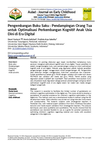 Pengembangan buku saku: Pendampingan orang tua untuk optimalisasi perkembangan kognitif anak usia dini di era digital.
