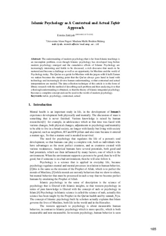 Islamic psychology as a contextual and actual tafsir approach.