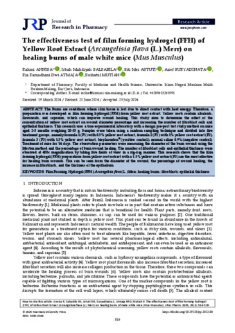 The effectiveness test of film forming hydrogel (FFH) of yellow root extract (Arcangelisia flava (L.) merr) on healing burns of male white mice (Mus musculus).