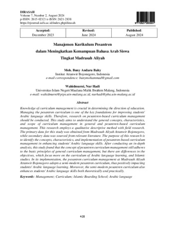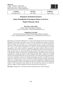 Manajemen kurikulum pesantren dalam meningkatkan kemampuan bahasa Arab siswa tingkat Madrasah Aliyah.