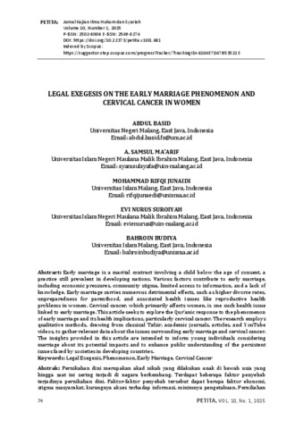 | Keywords: | Legal Exegesis; Phenomenon; Early Marriage; Cervical Cancer |