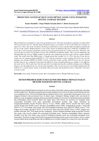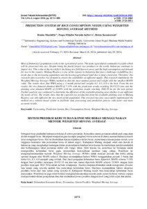 | Keywords: | Forecasting; Prediction System; Rice Consumption Needs; Weighted Moving Average |